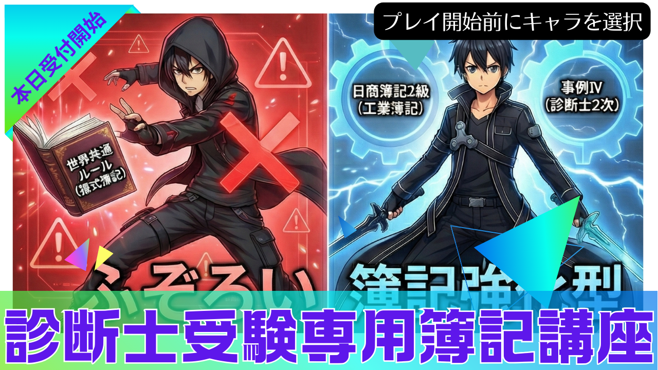 2/4より毎週水曜夜21:00~22:00で簿記2級~Ⅳ対策のzoom学習会を実施。初回2/4と2/11はYouTubeメンバーシップ加入前のお試し参加OKです。 読み込んでいます… 【本日受付開始】2/4開講・診断士受験専用週イチ簿記講座~千里の道も簿記2・3級から 仮に2次4事例を確率1/2のガチャを4連続で当てる試験と例えると、その合格期待値は1/2の4乗=6.25%になる。 一方、正解のある事例Ⅳを得意化し確率1.0に近づけると、全体合格率は1/2の3乗=12.5%に上昇し、試験に毎年落ち続けるベ ...