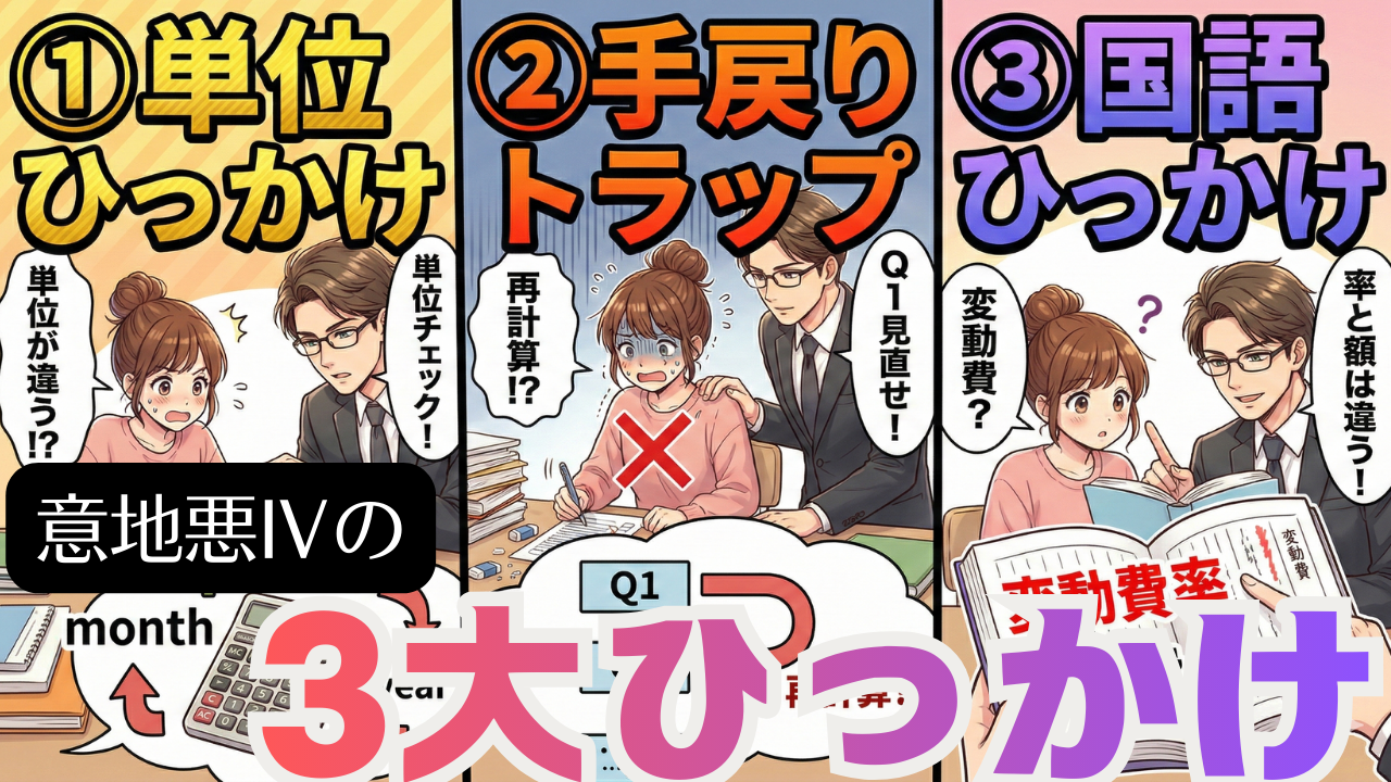 事例Ⅳ対策で陥りがちなのが、電卓を叩き続ける手計算による膨大な量稽古です。これでは計算作業に忙殺され、肝心の思考力を鍛える時間が奪われてしまいます。 複雑な計算プロセスを最小限に抑え、思考時間を確保することが合格への鍵となります。計算の海に溺れるのではなく、賢く泳ぎ切る術を身につけましょう。 市販の「意地悪」とされる難問こそが、実は本質的な理解を深めるための良問です。これらを避けていては、本試験で問われる応用力や現場対応力は身につきません。 難解な条件設定や複雑な数値処理を求める問題にあえて挑むことで、思 ...