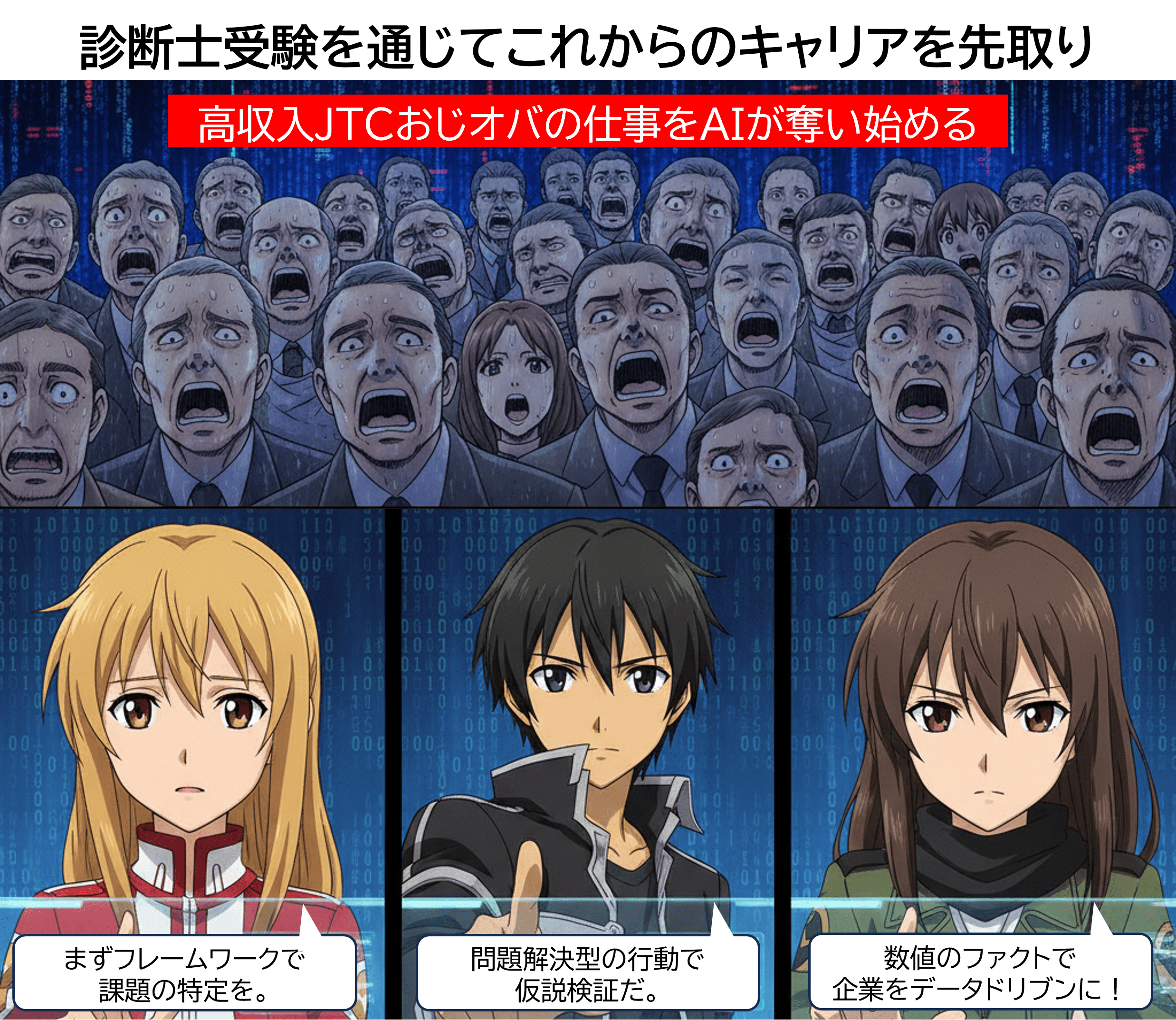 このAI時代を生き残るためのスキルセットへの「転生」を促す教育手段として、中小企業診断士試験のあり方が今注目されている。