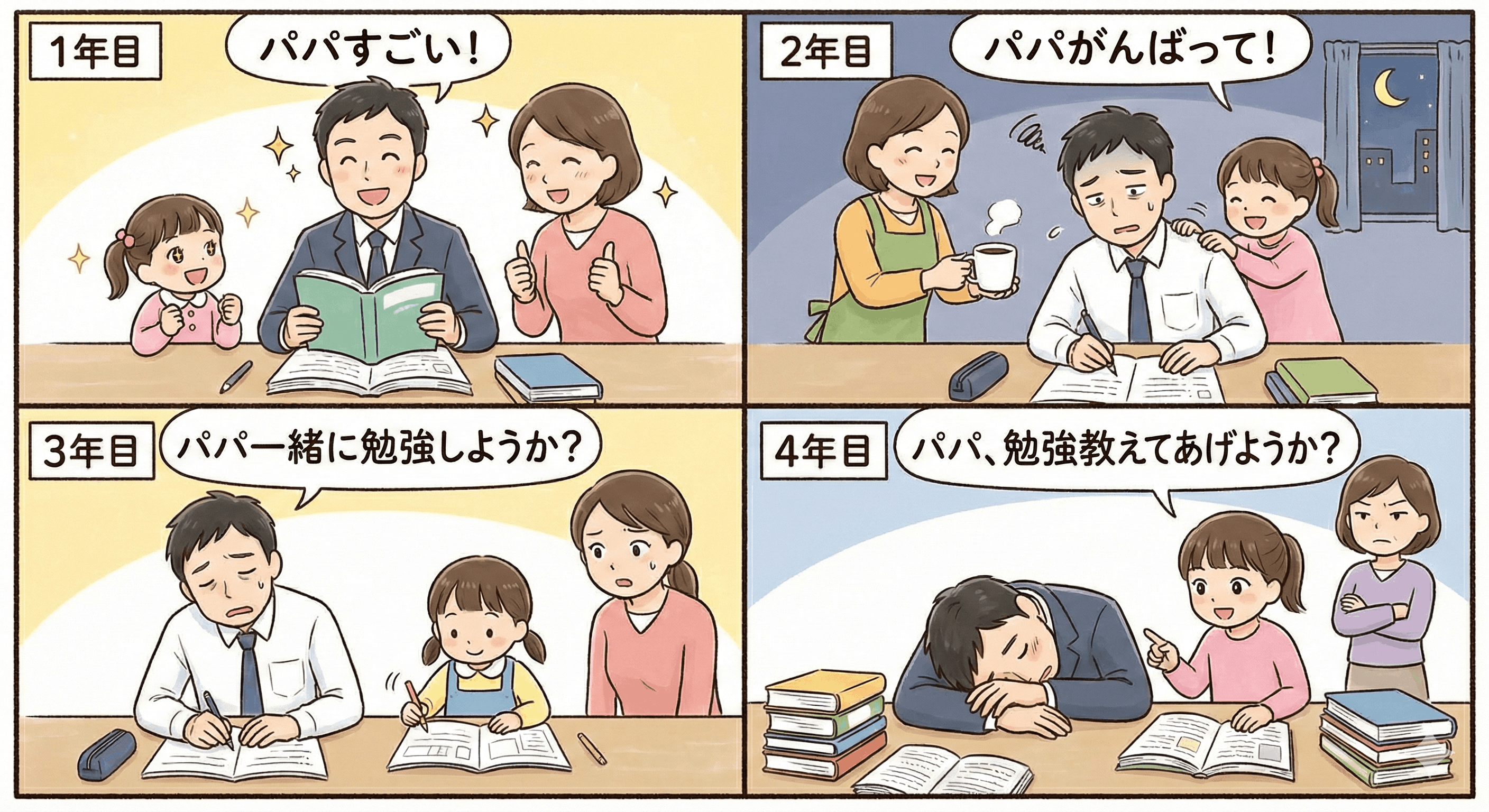 難関資格への挑戦を始めた父親を家族全員が誇らしく思い、目を輝かせて全力で応援してくれる、最も輝かしい時期です。