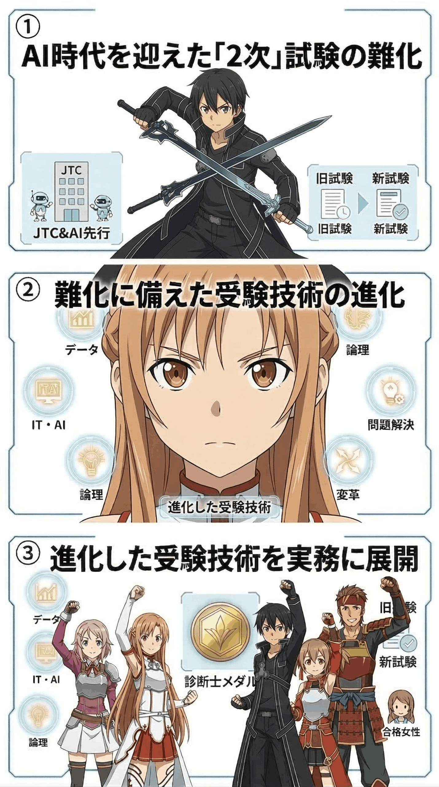 試験対策を通じて培った論理的思考やデータ分析の手法は、高待遇ホワイトカラー同士の生き残りを賭けたJTCの実務にそのまま役立ちます。