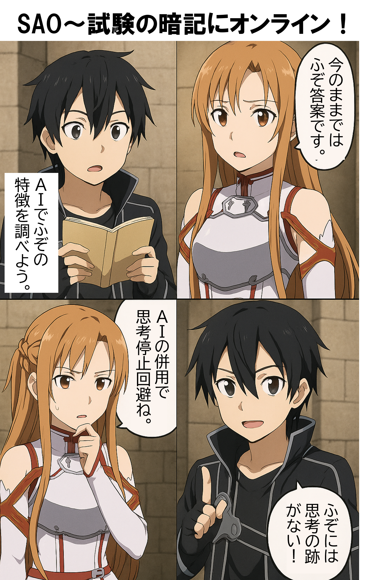 ヒロインが「AIの併用で思考停止回避ね」と納得。