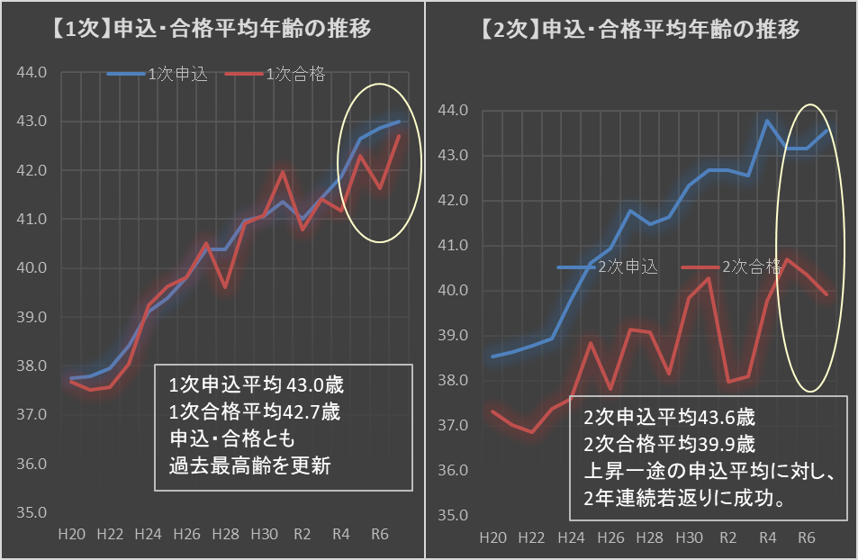 【おめでとう1,240名】2次申込平均43.6歳→合格平均39.9歳。バブルより△400名削減でどれだけ質向上?