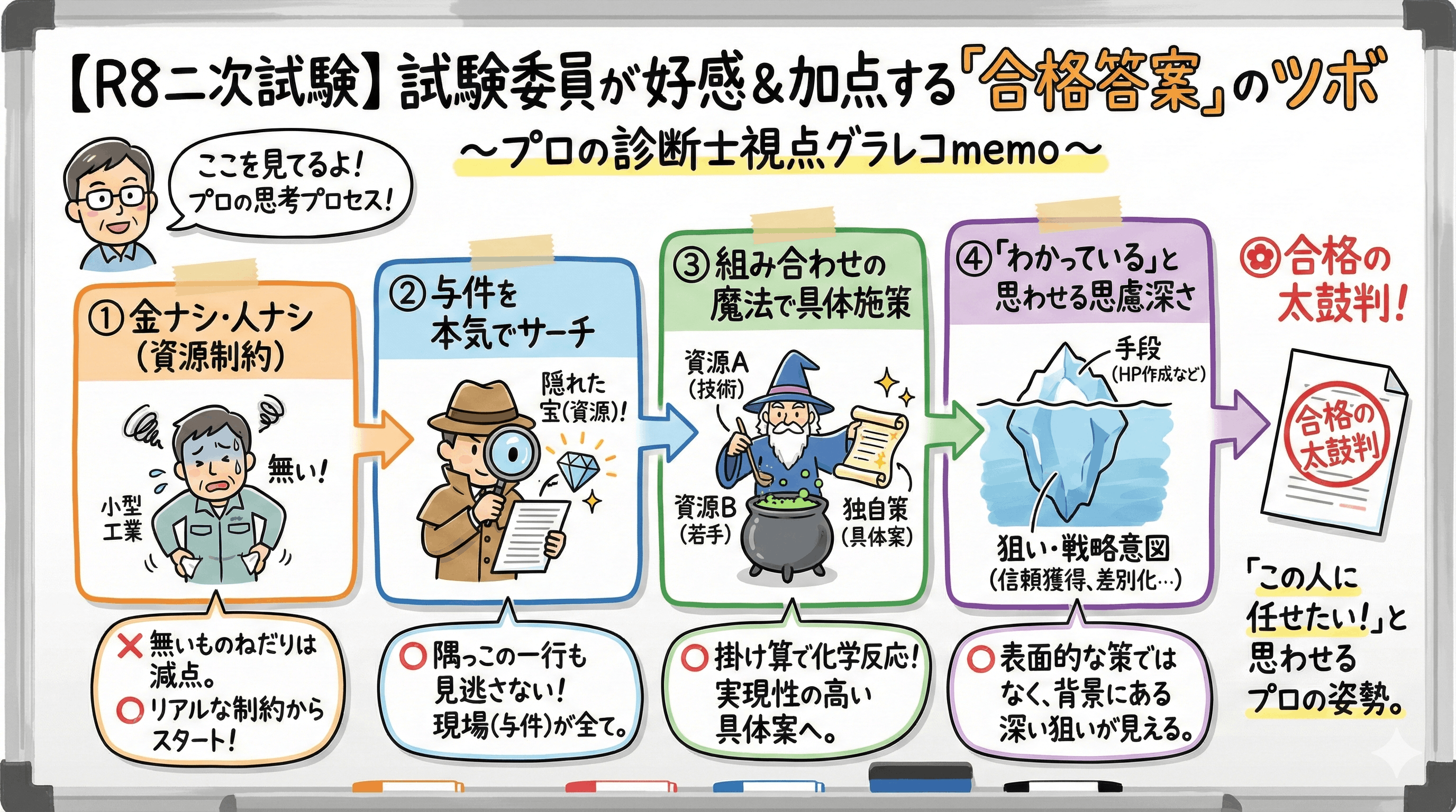 「なぜ今、その会社に、その策が必要か」という背景を語ることで、「この人は本質がわかっている」と試験委員に確信させることができます。