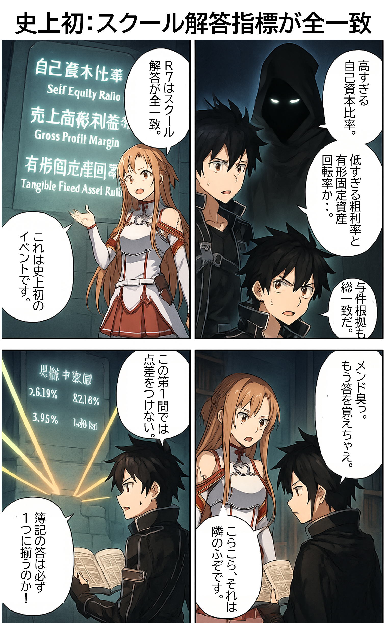 R7経営分析で、スクール全社の解答が3指標で一致したという、史上初の事態が起きた。