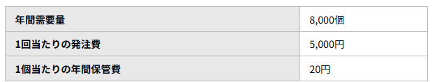 | 1回当たりの発注費として最も適切なものを選べ。 |