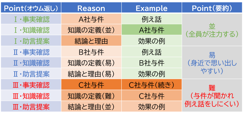 もっとも警戒すべきは事例Ⅲです。C社の工場現場の話は、「例え話」で場をつなぐことが難しく、知識があやふやだと一気に沈黙に陥るリスクがあります。