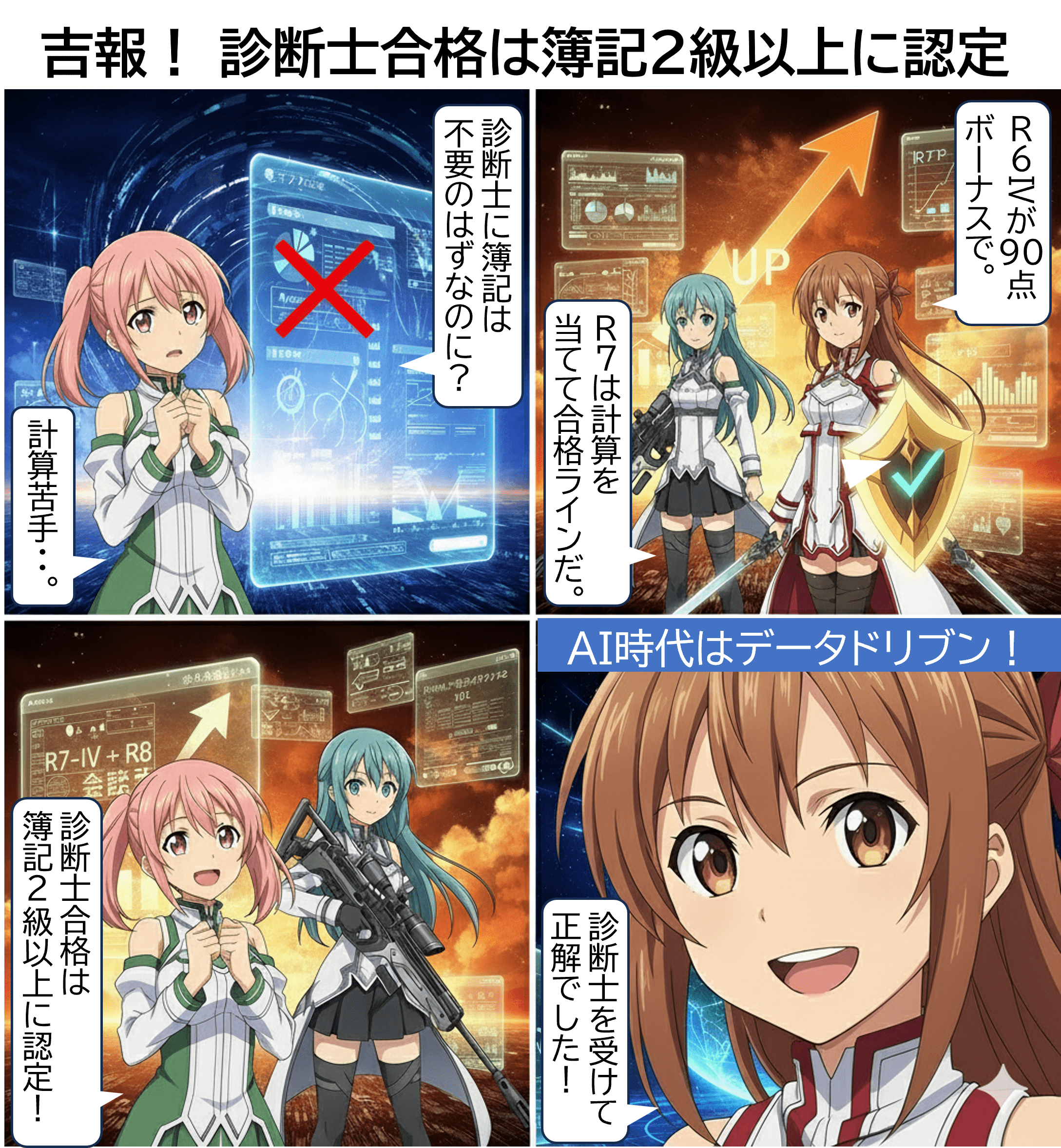 会計力向上により、診断士試験の合格ラインも変化。学習仲間同士での正しい分析で簿記の重要性の理解が広まり、「診断士合格なら簿記2級以上に認定!」という新たな基準が始まる。